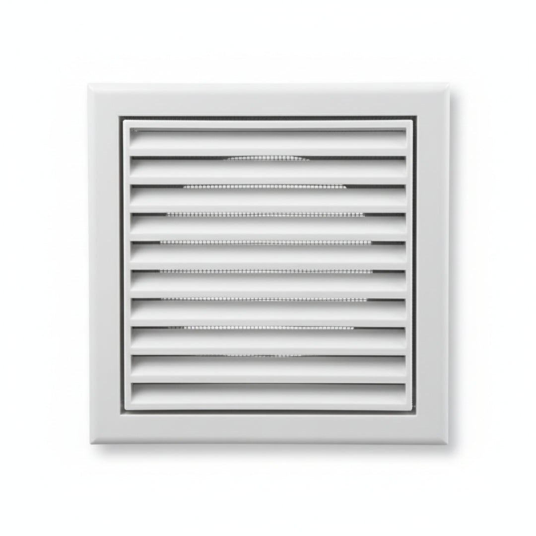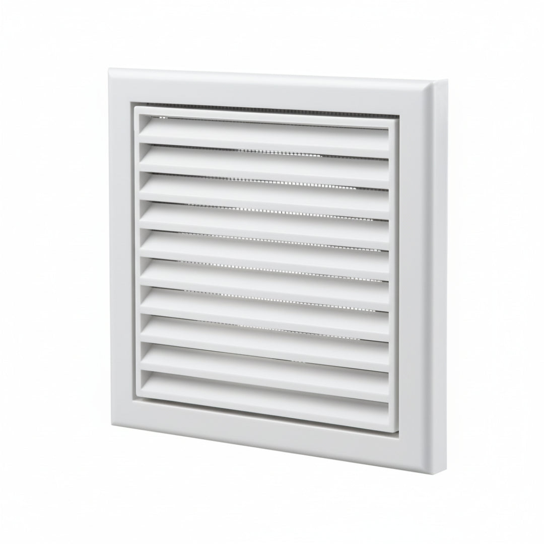 This is a compact, weather‑resistant external vent grille designed for 100 mm ducting, featuring fixed plastic louvers to provide reliable airflow while preventing rain or wind from entering your system. Its square outer frame (approximately 155 × 155 mm) allows neat wall or fascia/soffit mounting, making it well suited for terminating extractor fans, cooker hoods or any external ventilation run.