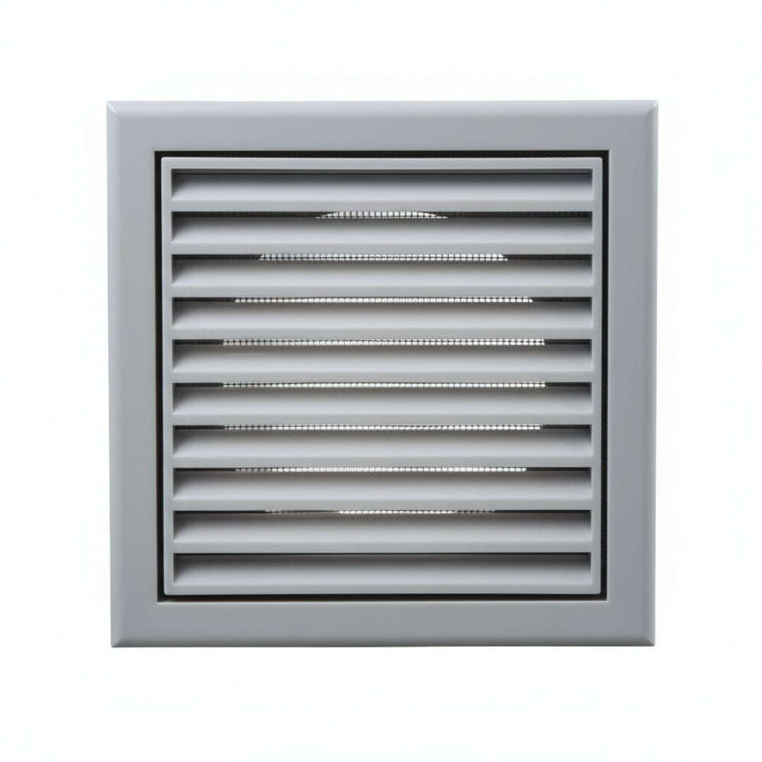 This is a compact, weather‑resistant external vent grille designed for 100 mm ducting, featuring fixed plastic louvers to provide reliable airflow while preventing rain or wind from entering your system. Its square outer frame (approximately 155 × 155 mm) allows neat wall or fascia/soffit mounting, making it well suited for terminating extractor fans, cooker hoods or any external ventilation run.