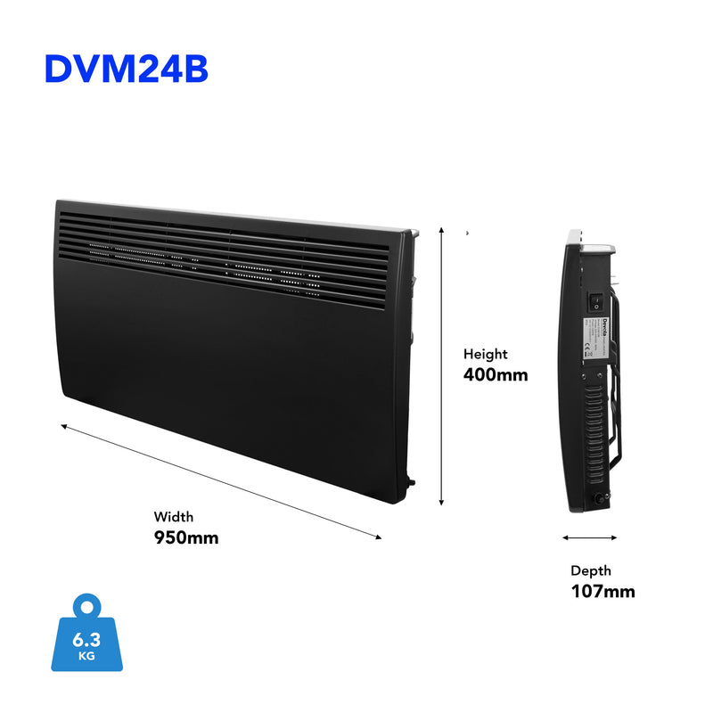 Devola 2.4kW Eco Panel Heater - Black - DVM24B