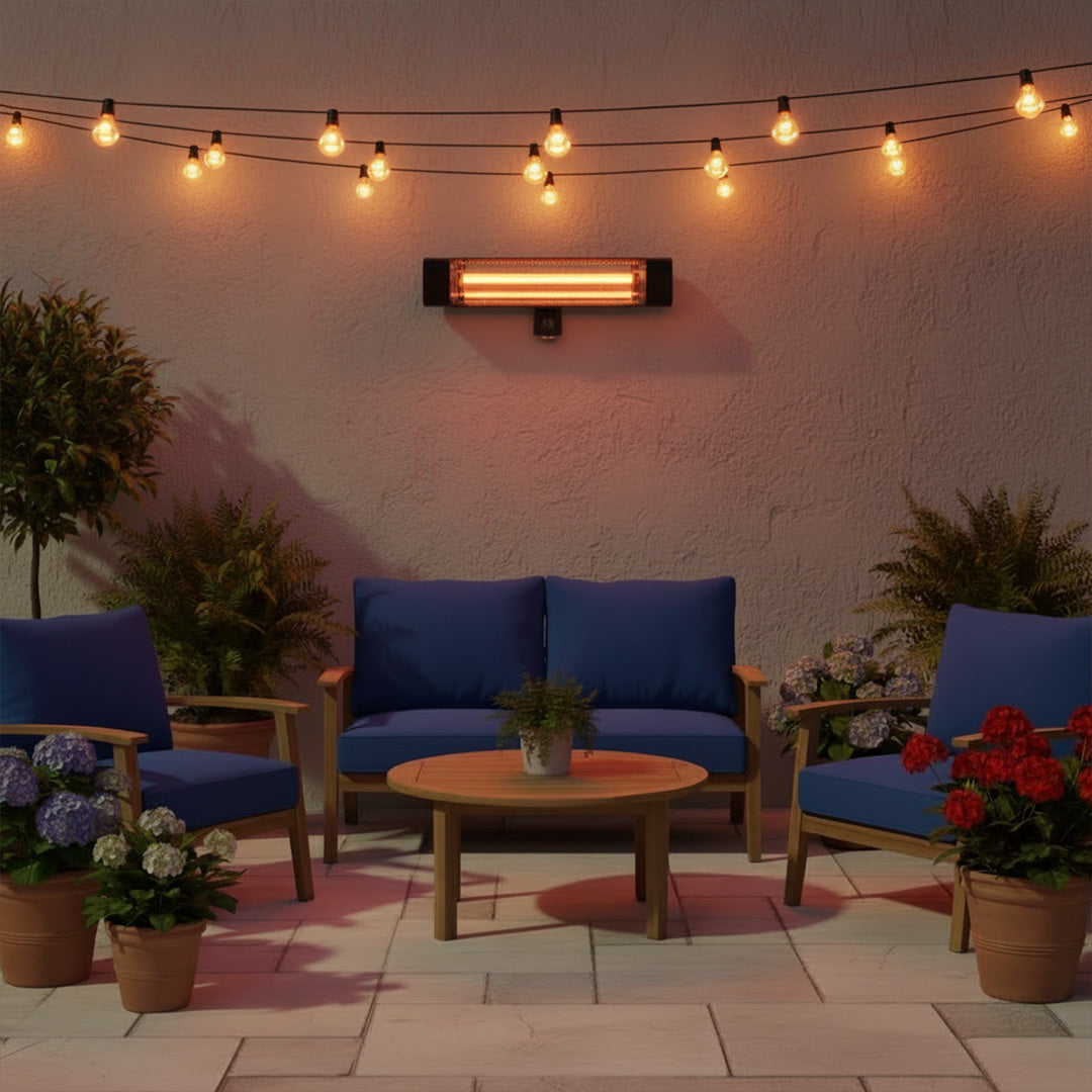 This heater is not only energy-efficient but also waterproof, making it ideal for outdoor use. It complies with Lot 20 regulations, meaning it can adjust its heating wattage automatically or manually to save energy and reduce costs. With an IP65 rating, it offers protection against dust and low-pressure water jets, ensuring reliable performance in different weather conditions. This makes it a great addition to patios, gardens, or any outdoor space where you need a bit of extra warmth.