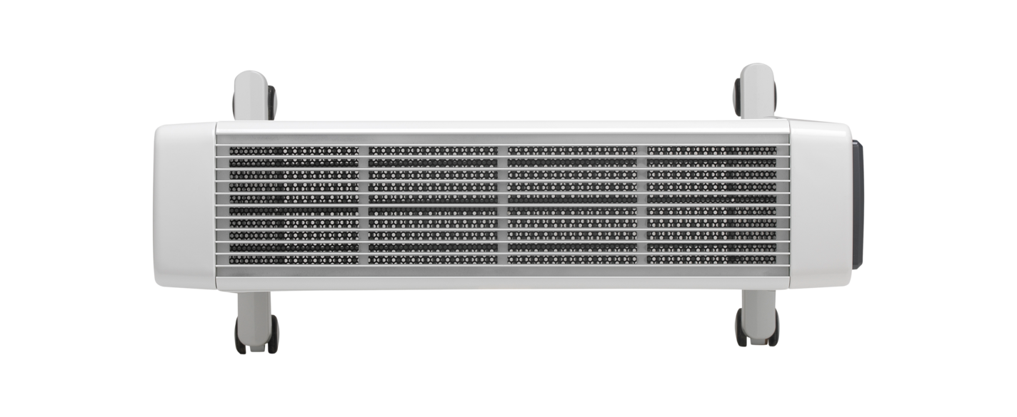 The heater is easily portable via its non-slip, non-scratch gliding castors and dual carry handles at either end. It is not heavy as it does not contain oil, making it lighter than direct equivalents. It has an all round high gloss finish and a handy cable tidy to keep it neat when being stored/not in use.