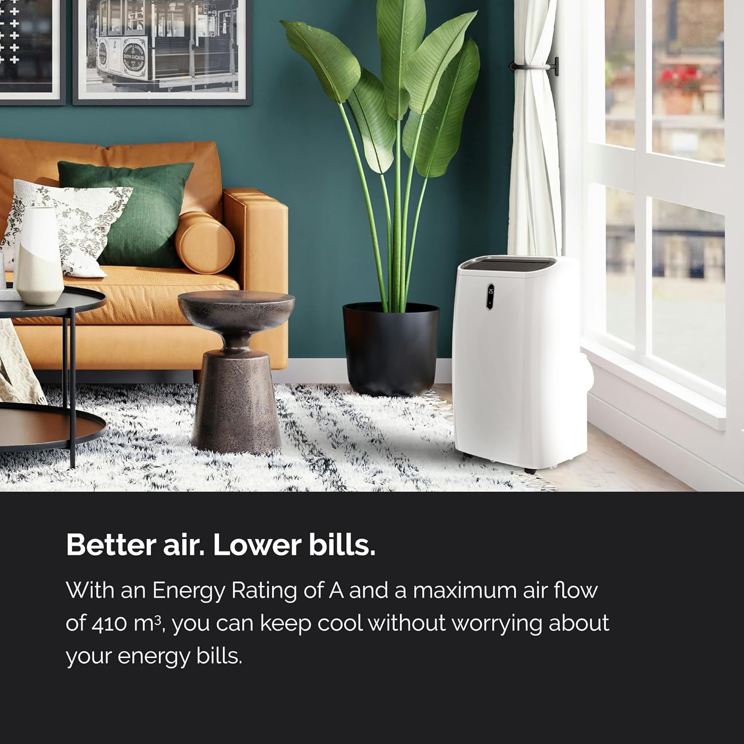 The MeacoCool Pro Series MC12000RPRO offers powerful, reliable air conditioning with the convenience of remote control via the Meaco App. Whether you’re cooling a bedroom, office, or living space, this smart portable unit provides flexible performance for rooms up to 30m² with an airflow of up to 410m³/hour. With 12,000 BTU cooling capacity and an A energy rating, it delivers efficient performance at a running cost of approximately 37p per hour.