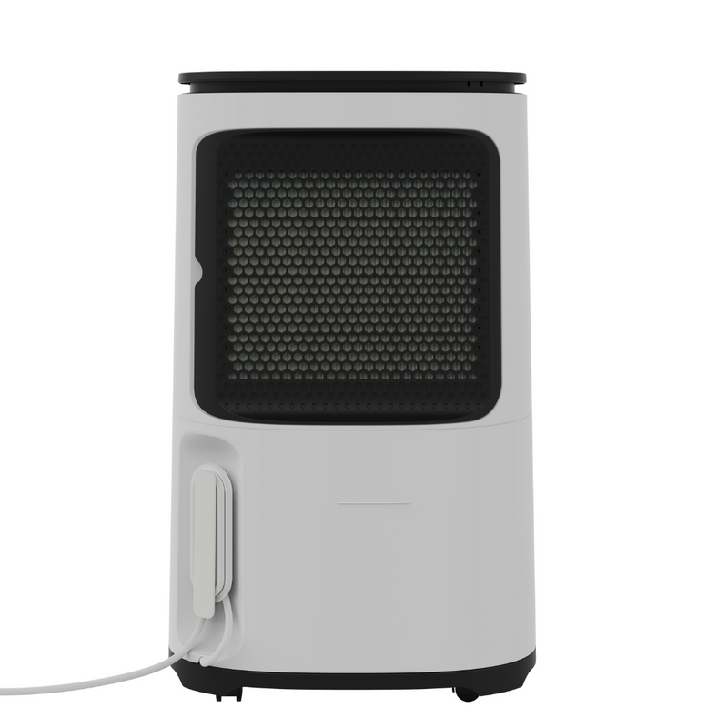 This unit combines smart tech with a user-focused design. It features a modern, extra-large LCD screen with touch-sensitive controls, full tank alerts, and a carry handle at the top for easy repositioning. The 4.8L water tank includes a built-in handle and can be emptied from either side — a practical solution rarely seen in competitor models. A Night Mode reduces both noise and light output by dimming the screen and lowering the fan speed, ideal for bedrooms or quiet environments. Additional features such as a Child Lock and Timer function enhance safety and convenience. Thanks to its concave back panel, the unit can be placed flush against a wall and still operate effectively — something most dehumidifiers cannot do. Note: A hose is not included, but a standard garden hose can be attached using the supplied adapter for continuous drainage.