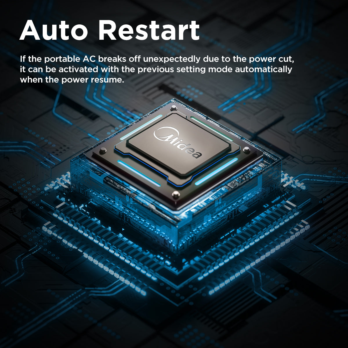 Simple digital controls and the included remote control allow easy operation from across the room, giving you full control over temperature (17°C to 35°C), fan speeds, and modes without needing to get up. If there's ever a power cut, the auto-restart function ensures your preferred settings are saved and restored automatically.