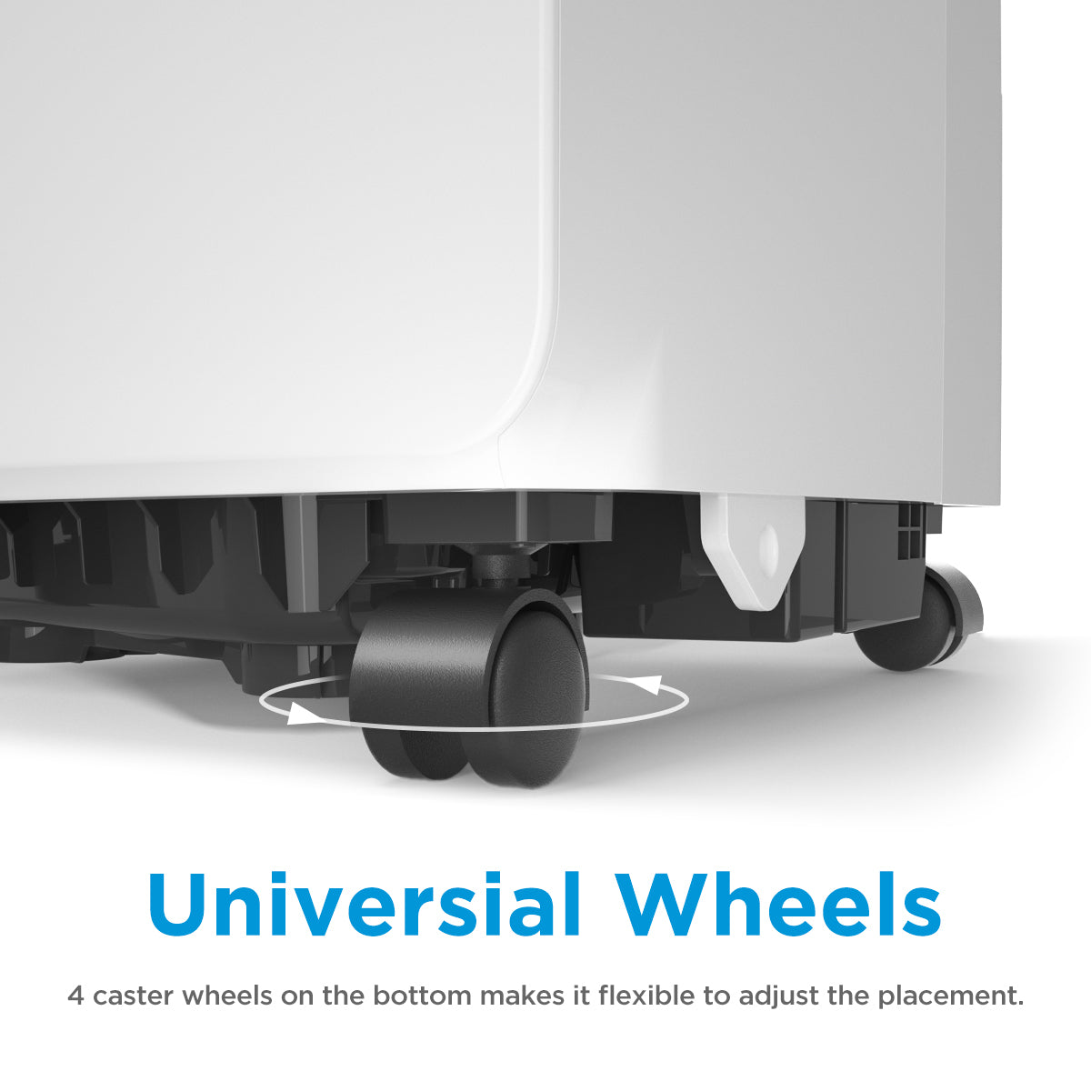 Thanks to its portable design, the unit is easy to move from room to room using its 360° caster wheels. There’s no complex installation – simply plug it in, attach the included exhaust hose to a window or door, and enjoy rapid cooling.
