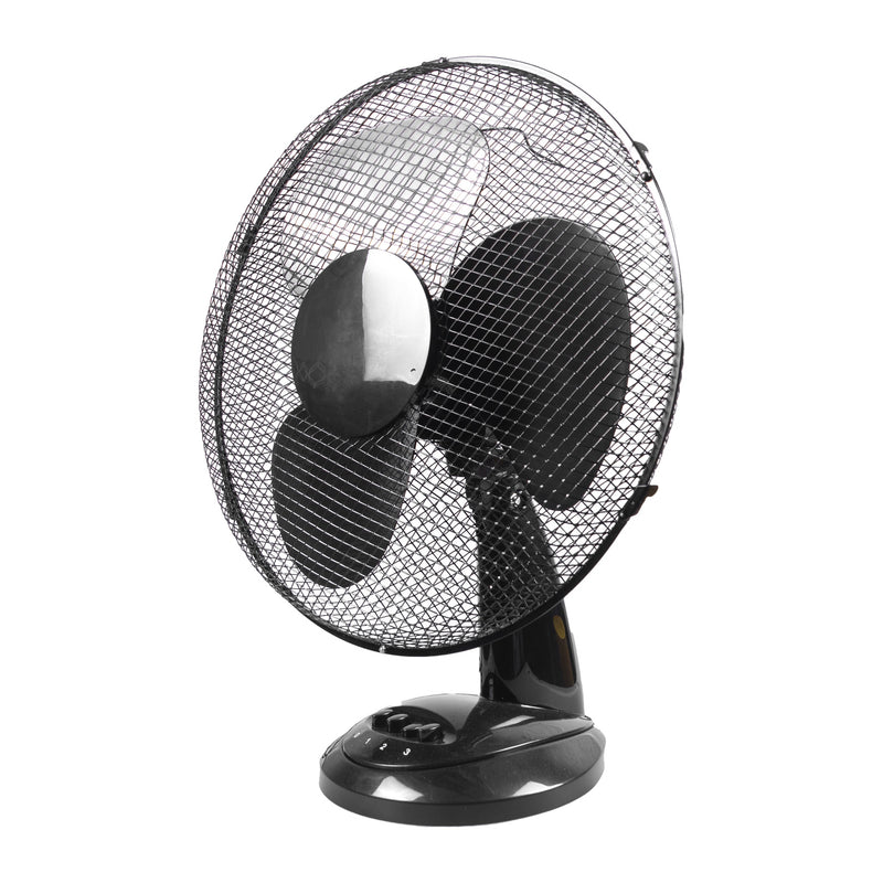 This Prem-I-Air 16" desk fan is perfect for cooling the air, especially during warmer months. It boasts 3 wind velocity speeds, so the circulation speed can be adjusted to suit. In addition, the head can also be adjusted to achieve the perfect wind flow direction. It is easy to operate using simple button controls. The fan has a generous 1.5 m cable for optimum reach and is quiet in operation. It's sleek black housing will complement any setting.