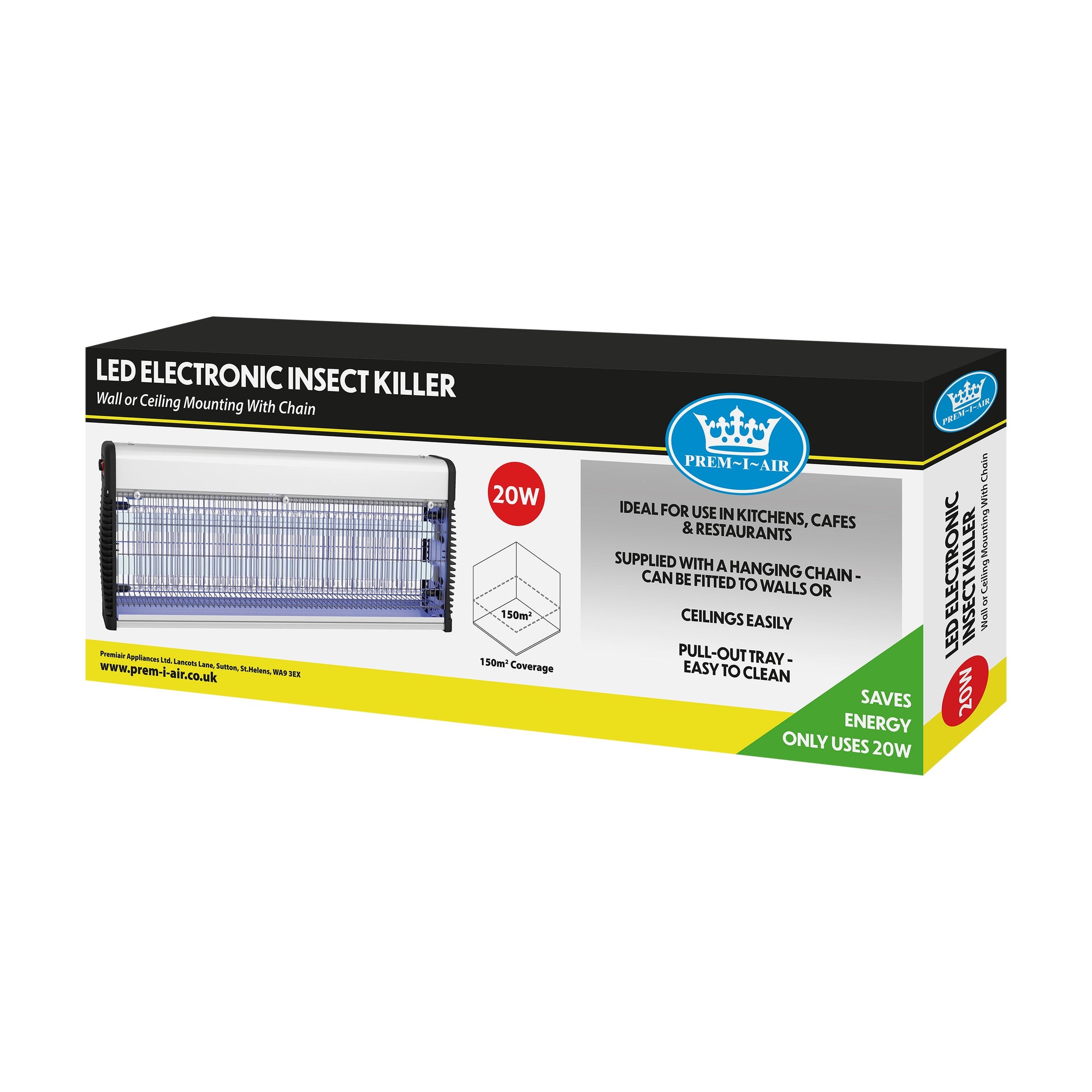 This Prem-I-Air 16W insect killer is effective for a range of applications such as home, office, garage or garden. The device protects against disease carrying insects and flies. The fly zapper features 2 x T8 8W LED tubes, which attract the insect to the device. Once contact is made the bug will be electrocuted in the metal grid and instantly killed. It is manufactured without any use of harmful chemicals or pesticides and is CE and RoHS certified.