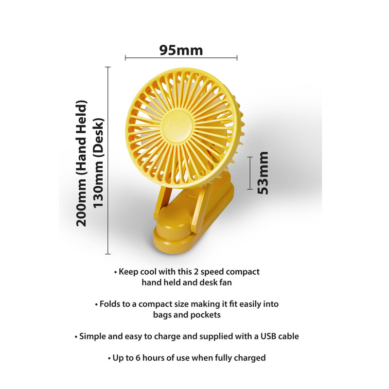Premiair Mini Desk & Hand Held Fan Yellow - EH1952Y