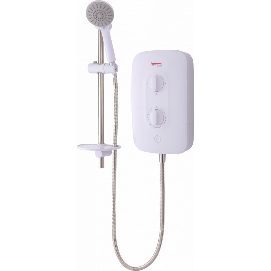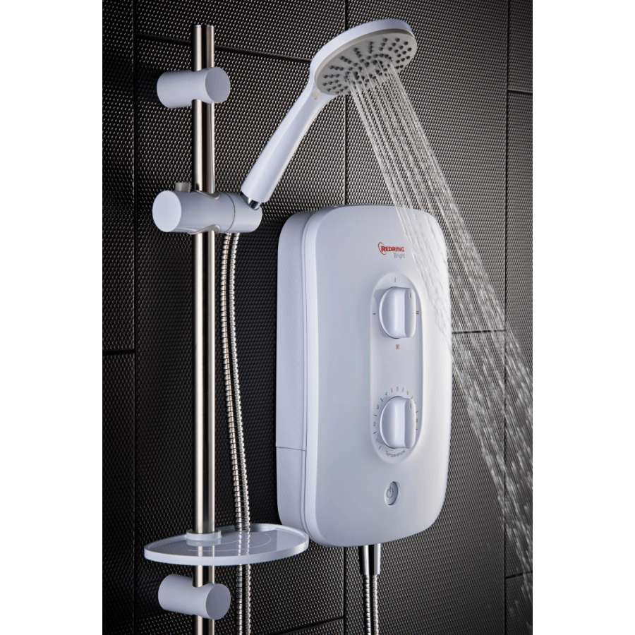 Redring's Bright range of showers have been purposely designed to enable quick and easy installation with removable lower sections for ease of access and dual terminal blocks for left- or right-hand side power connection. A choice of 6 cable and 8 water entry points, and its FlexiFit riser rail make Bright the ultimate replacement shower. Redring Bright showers are A energy efficiency rated and come complete with a reassuring 3 year UK guarantee.