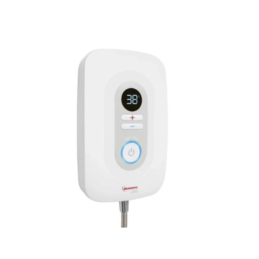 Redring's range of Glow Thermostatic instant electric showers give highly accurate temperature control to within 1.5°C for safety, comfort and complete piece of mind when showering. They feature tactile push-button controls for all functions and a digital temperature display with audible feedback confirmation. The accompanying shower accessory kit has a 5 mode, easy rub-clean showerhead and a 1.5m anti-kink shower hose. All Redring Glow showers also benefit from phased shutdown anti-scaling technology and a reassuring 3 year UK guarantee. The Glow range also features SmartFit Multi entry connection points (8 power, 6 water) providing ultimate versatility to the installer.