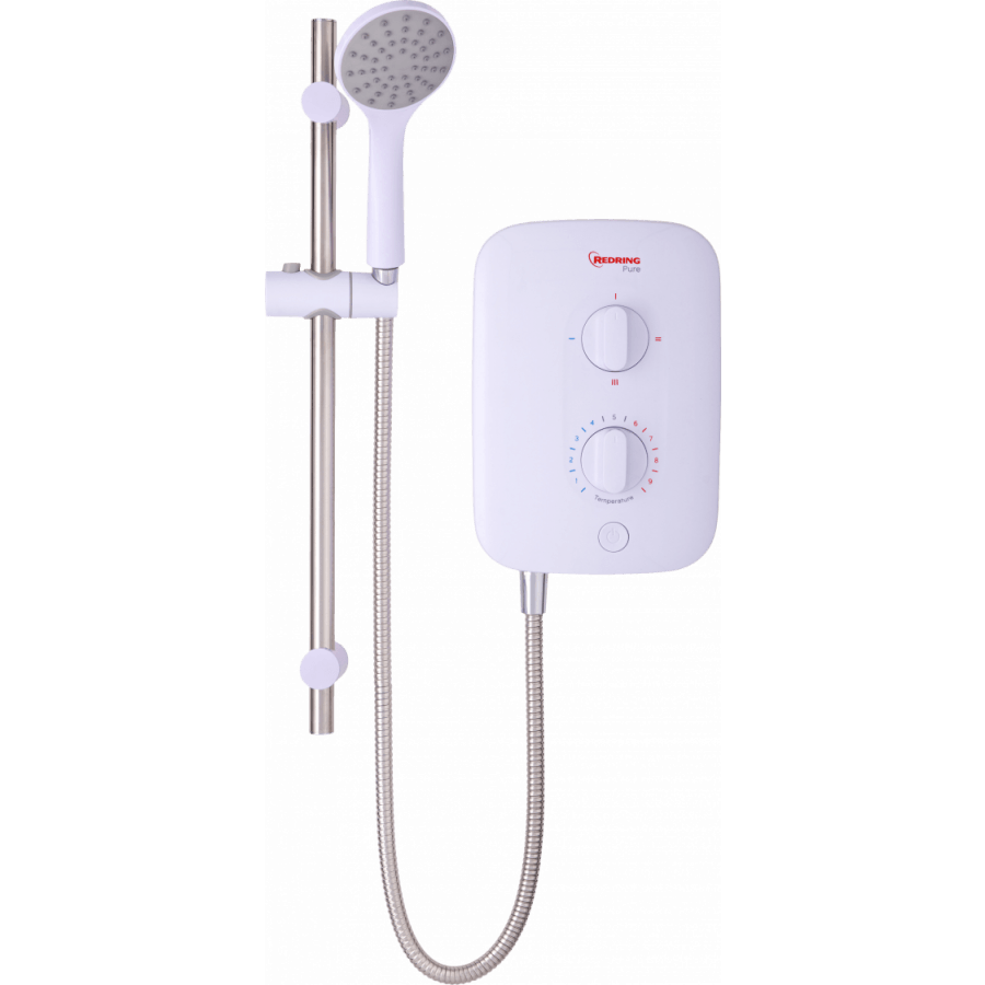 Redring's range of Pure instant electric showers are compact in design with smooth contour styling and great value too. They are simple to use with convenient push button, start/stop operation and are A energy efficiency rated, the perfect choice for cost-conscious showering.