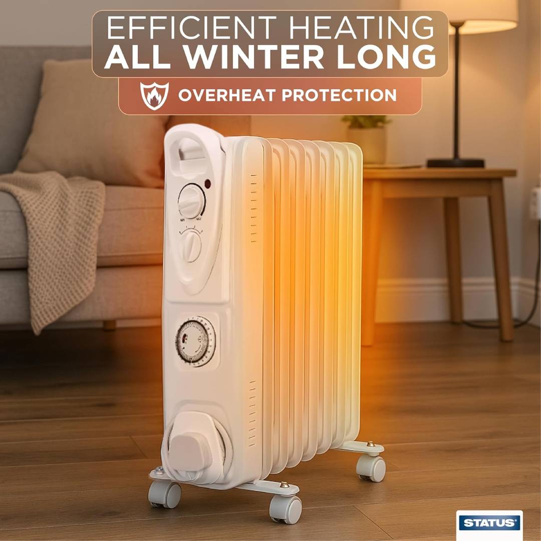 - Status 2000 Watt 9 Fin Oil Filled Radiator that's ideal for providing instant heat whenever needed