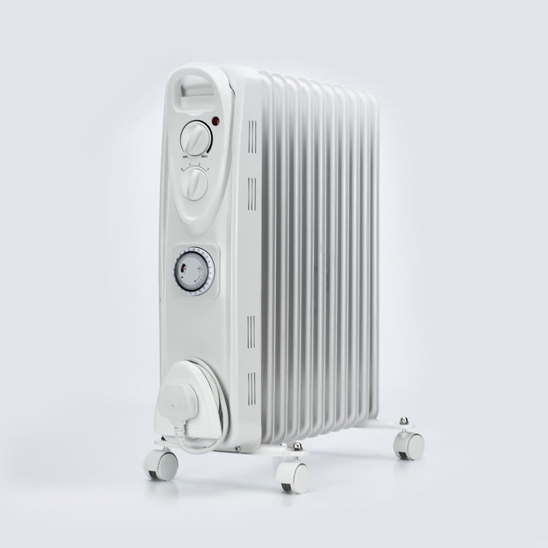 STATUS 11 Fin - Oil Filled Radiator [OFH11-2500WT1PKB]: Immerse yourself in the powerful warmth of its 2000W heating capacity. The timeless white exterior adds a touch of sophistication to any environment. With three heat settings, an adjustable thermostat, and a convenient timer, this radiator offers a tailored heating experience with precise temperature control and scheduling. Whether you crave cozy comfort or a carefully timed heat, it caters to your desires.Specification