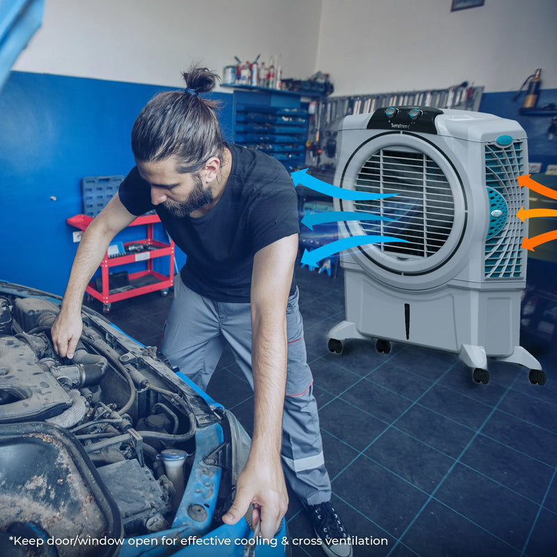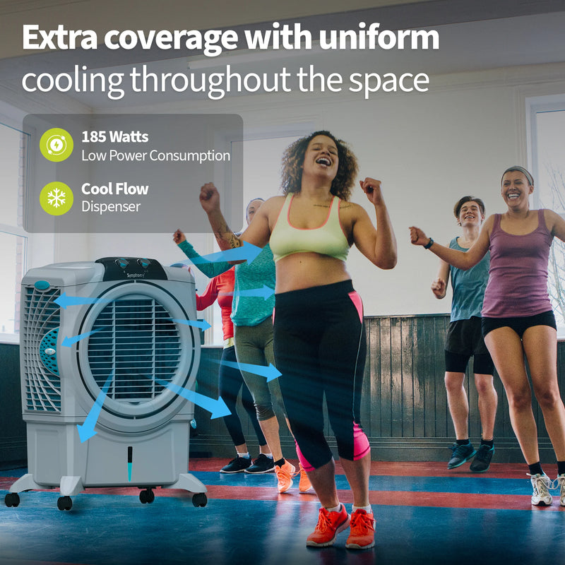 The Symphony Sumo 75XL is a heavy-duty desert air cooler purpose-built to deliver large-scale cooling performance in demanding environments. Designed for coverage areas up to 37 square metres, it’s ideal for spacious living rooms, open-plan offices, workshops, conservatories, and semi-outdoor settings. With an enormous 75 litre water tank and advanced evaporative cooling system, this unit ensures extended runtime, high air volume circulation, and a consistently comfortable indoor environment, even during peak summer conditions.