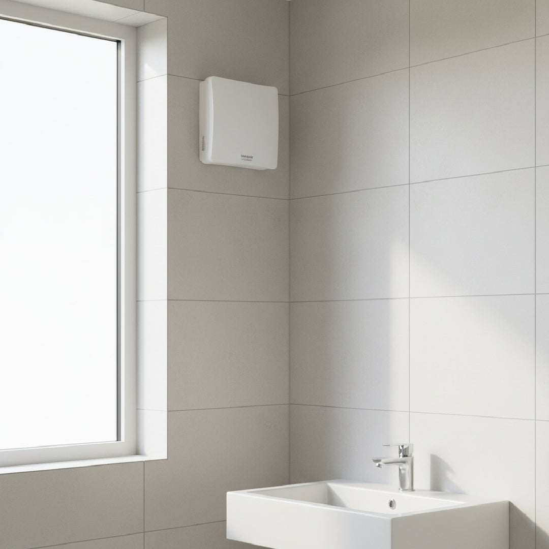 Installation flexibility is good: it can be mounted on a wall, ceiling, panel or window, and is supplied with a remote SELV transformer to locate away from wet areas. The unit meets UK building regulations (Approved Documents F & L, System 3 continuous mechanical extract ventilation) and is SAP Appendix Q eligible thanks to its low specific fan power (SFP) of about 0.18 W/l/s in through-wall kitchen applications. In short: a quiet, energy-efficient, safe and compliant ventilation option for wet rooms.