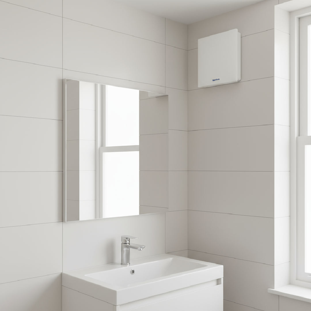 This fan is designed for quiet, efficient bathroom ventilation, with sound levels starting from just 12 dB(A) on its low or background mode. It features a high-efficiency motor and variable speed settings that are selectable during installation, enabling you to tailor the airflow to the specific room size or layout. Its design supports intermittent operation combined with a humidistat and overrun timer to help manage moisture automatically.