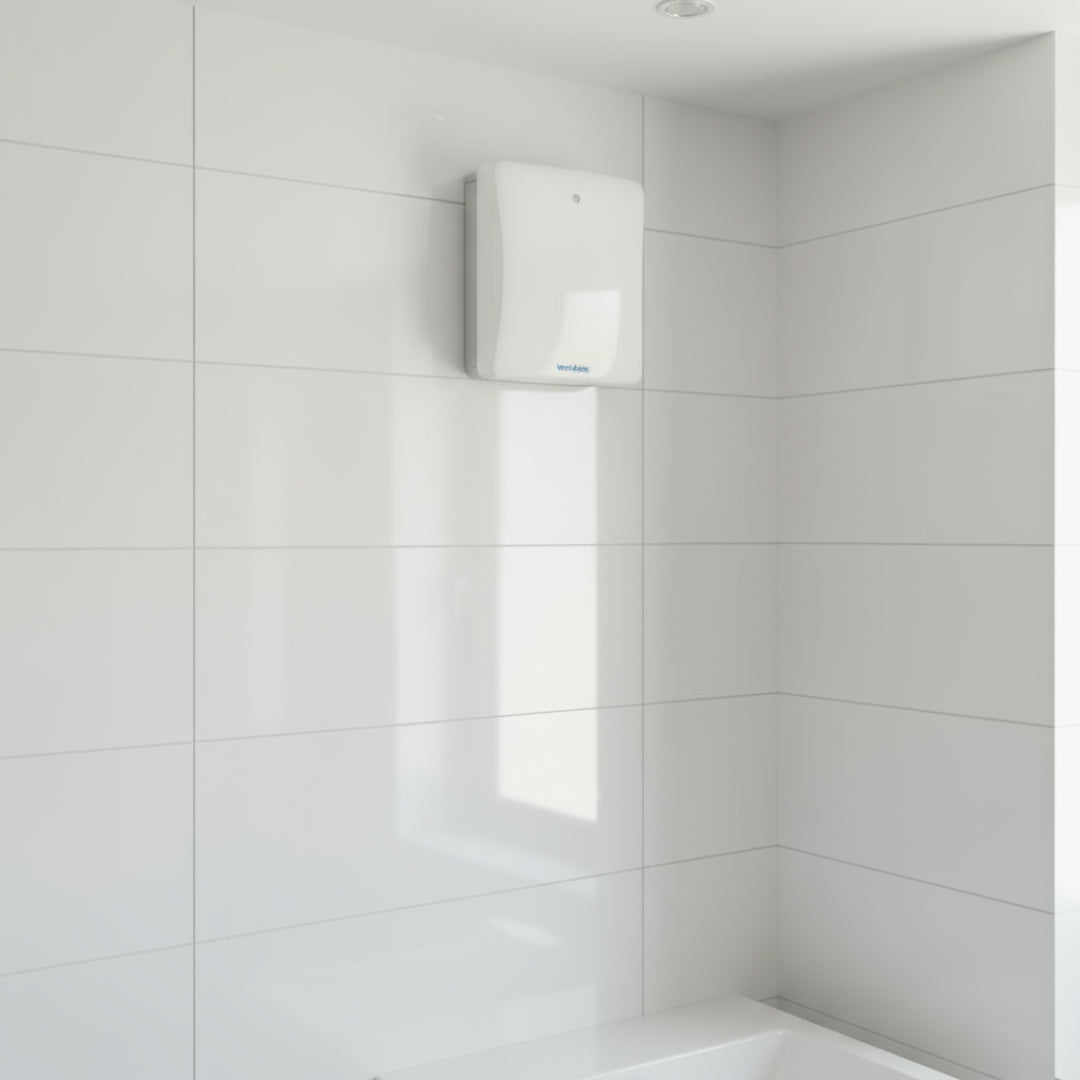 The fan is filter-free (thanks to an innovative impeller design that eliminates the need for a filter), rated at IPX4 for use in bathroom environments, and meets UK Building Regulations (Approved Documents F & L) for domestic wet-room ventilation requirements.