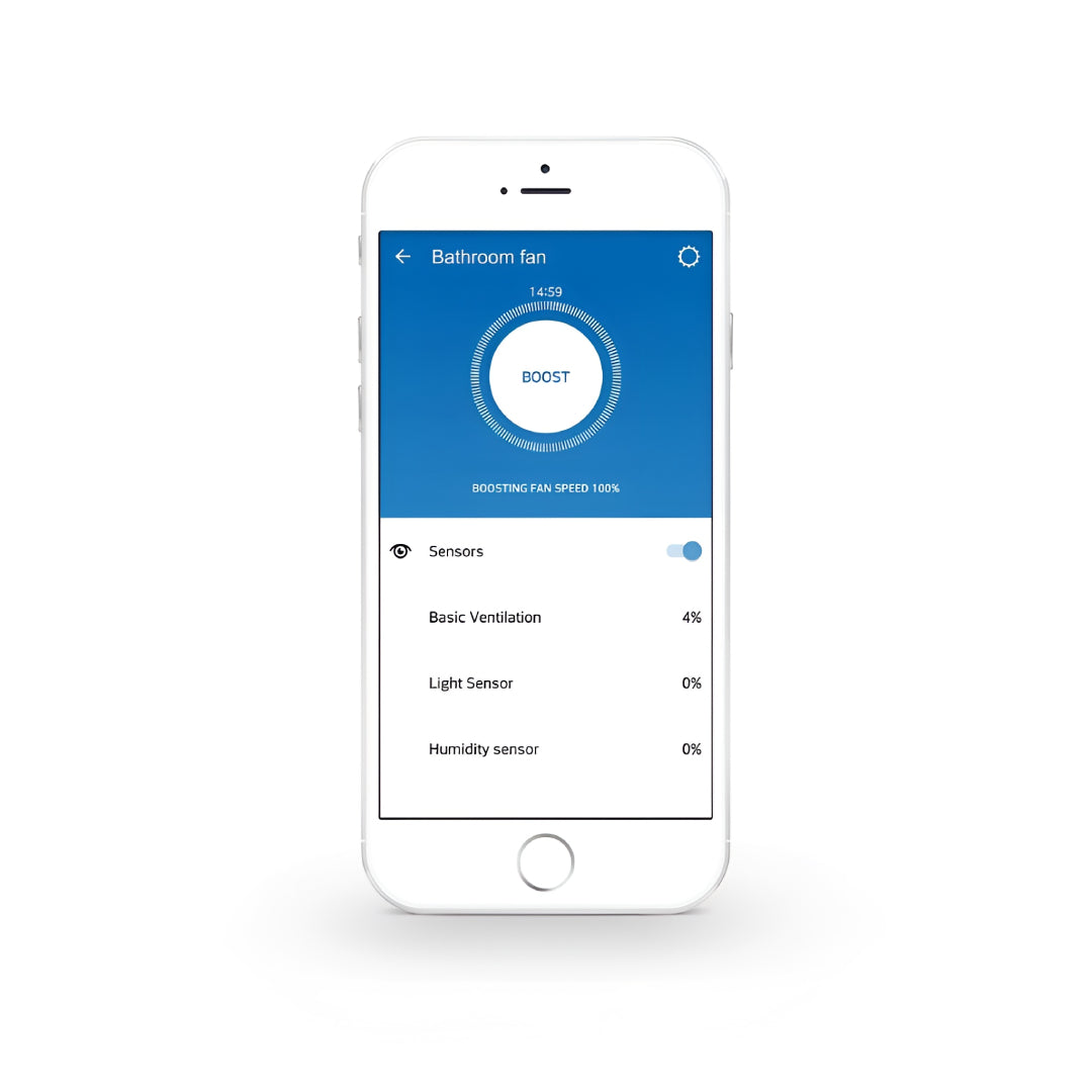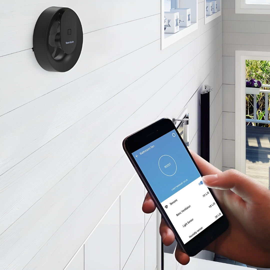 One of the key features is its “smart” control functionality. The built-in light sensor detects occupancy or changes in light levels (including shadows), so the fan can ramp up or switch modes automatically — triggering only when genuinely needed, and avoiding nuisance activations (e.g., passing car headlights). A humidity sensor (humidistat) also monitors sudden rises in humidity (like after a shower) and boosts the fan accordingly, then scales back when normal conditions return. Additionally you can control and customise its behaviour via a Bluetooth-enabled app: set timer delays, silent hours, purge modes, and more.