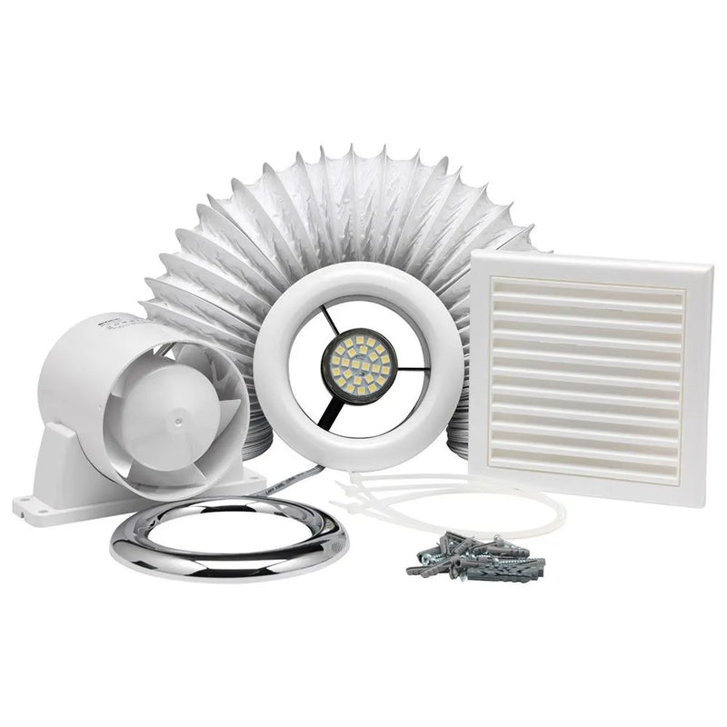 Xpelair Airline 100mm Inline Extract Fan Kit with Light - ALL100 - 93290AW