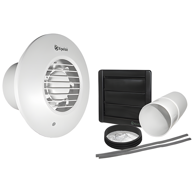 Xpelair Simply Silent LV100 4/100MM Round SELV Bathroom Fan With Humidistat, Pullcord, Timer and Wall Kit - 93015AW